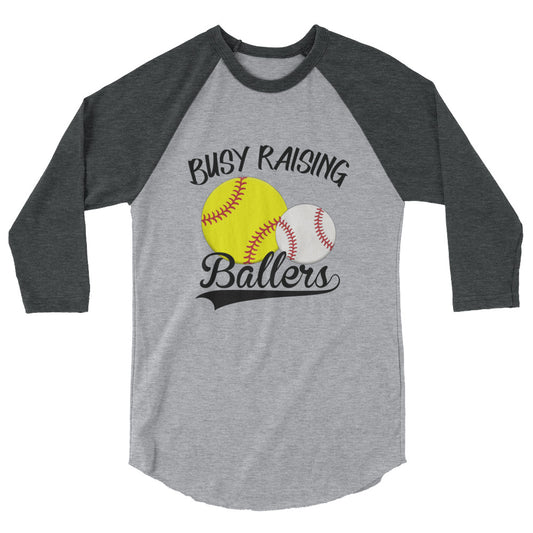 Busy Raising Ballers 3/4 sleeve raglan shirt
