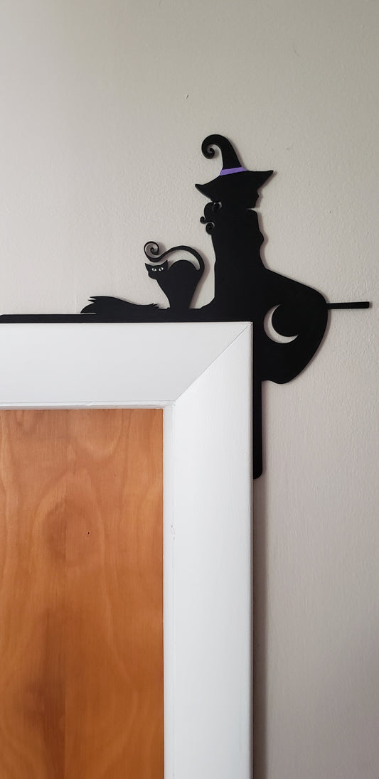 Wooden Halloween witches - corner over door decor
