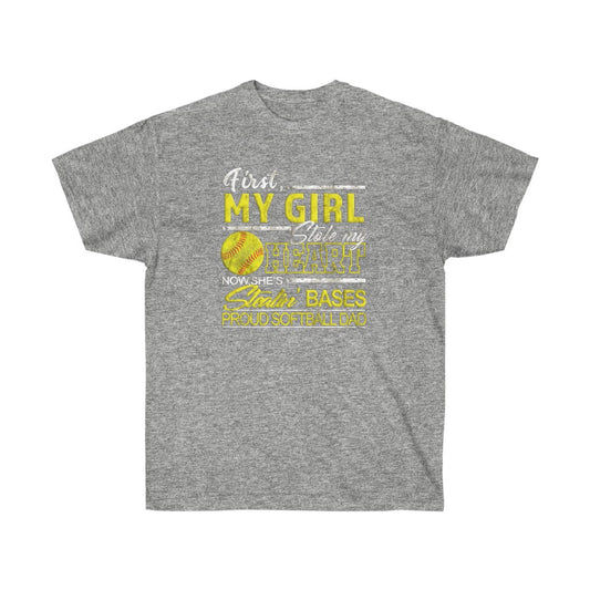 Stealing bases Proud softball DAD Unisex Ultra Cotton Tee- front only